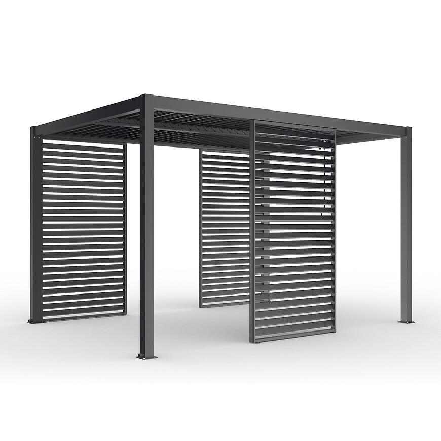 Panel żaluzjowy R Luxe o wymiarach 90 × 218 cm w kolorze antracytowym, wykonany z wysokiej jakości aluminium, idealny do pergoli 3 × 3 m i 3 × 4 m. Ruchoma ścianka z regulowanymi lamelami pozwala kontrolować ilość światła i prywatność dzięki technologii LightImpact. Trwały, odporny na warunki atmosferyczne i korozję, zapewnia stylowe zacienienie i elegancki wygląd przestrzeni ogrodowej. Możliwość montażu do trzech paneli na jednej ścianie pergoli umożliwia elastyczne dopasowanie do indywidualnych potrzeb.