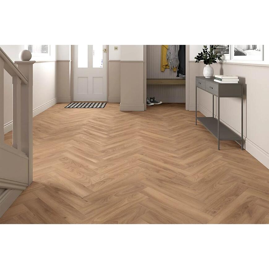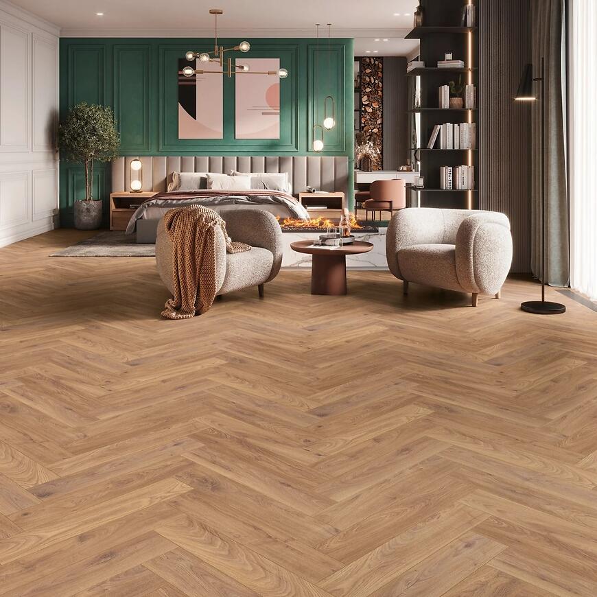 Panele podłogowe KRONOORIGINAL Herringbone Dąb to eleganckie i wyjątkowo trwałe rozwiązanie do nowoczesnych wnętrz. Dzięki klasie ścieralności AC5 i użyteczności 32 panele doskonale sprawdzają się w pomieszczeniach o intensywnym użytkowaniu, takich jak biura, korytarze czy kuchnie. Struktura drewna oraz dekor w odcieniu dębu nadają podłodze naturalny, szlachetny wygląd, a wzór jodełki podkreśla ponadczasowy charakter aranżacji. Panele 1-lamelowe zostały wykończone 4-stronną V fugą, co dodatkowo podkreśla ich estetykę i elegancję. Wodoodporność oraz możliwość stosowania na ogrzewaniu podłogowym zapewniają komfort użytkowania w każdych warunkach.