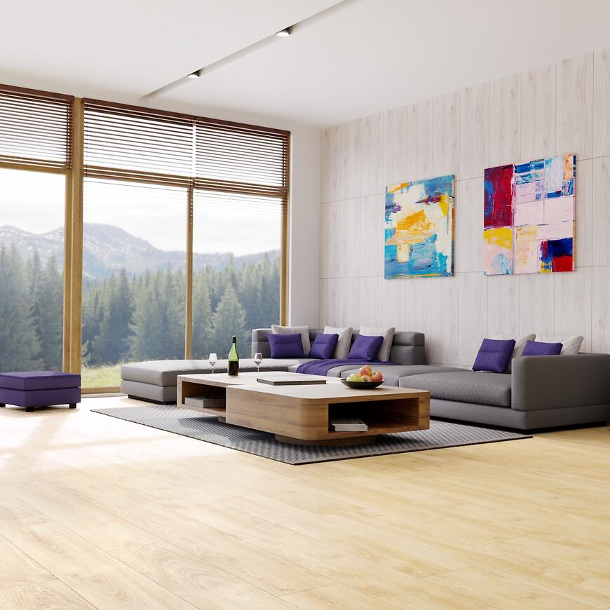 Postaw na trwałość i estetykę z panelami podłogowymi Dąb Harmony z kolekcji Aqua Parquet Mercado. Naturalny dekor dębu i struktura drewna wiernie oddają wygląd prawdziwej deski, tworząc ciepłe i eleganckie wnętrze.