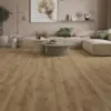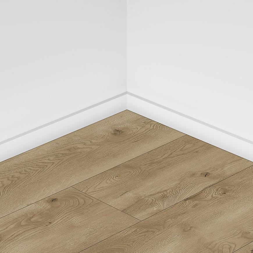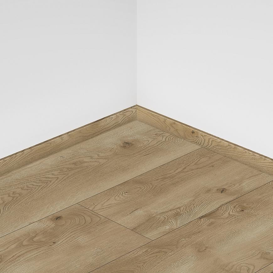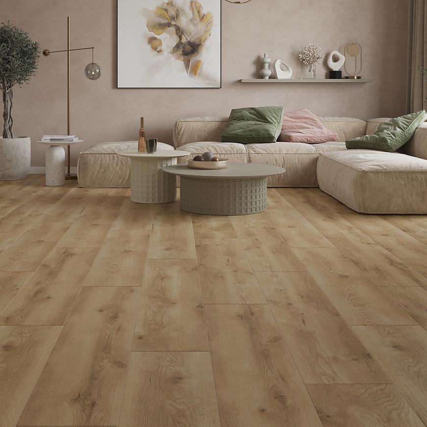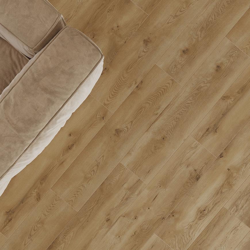Grubość 8 mm w połączeniu z 4-stronną V-fugą podkreśla elegancję szerokich desek, nadając wnętrzu nowoczesny charakter. Struktura synchroniczna 3D wiernie odwzorowuje naturalne usłojenie drewna, tworząc realistyczny efekt. Panele są wodoodporne i przystosowane do ogrzewania podłogowego, co zwiększa ich funkcjonalność w wymagających przestrzeniach. Dzięki systemowi szybkiego montażu click 5G oraz zamkowi Megaloc Aqua Protect układanie podłogi jest szybkie i precyzyjne. Powierzchnia o właściwościach antypoślizgowych i antystatycznych zapewnia komfort użytkowania, a klasyfikacja ogniowa Cfl-s1 potwierdza ich bezpieczeństwo.