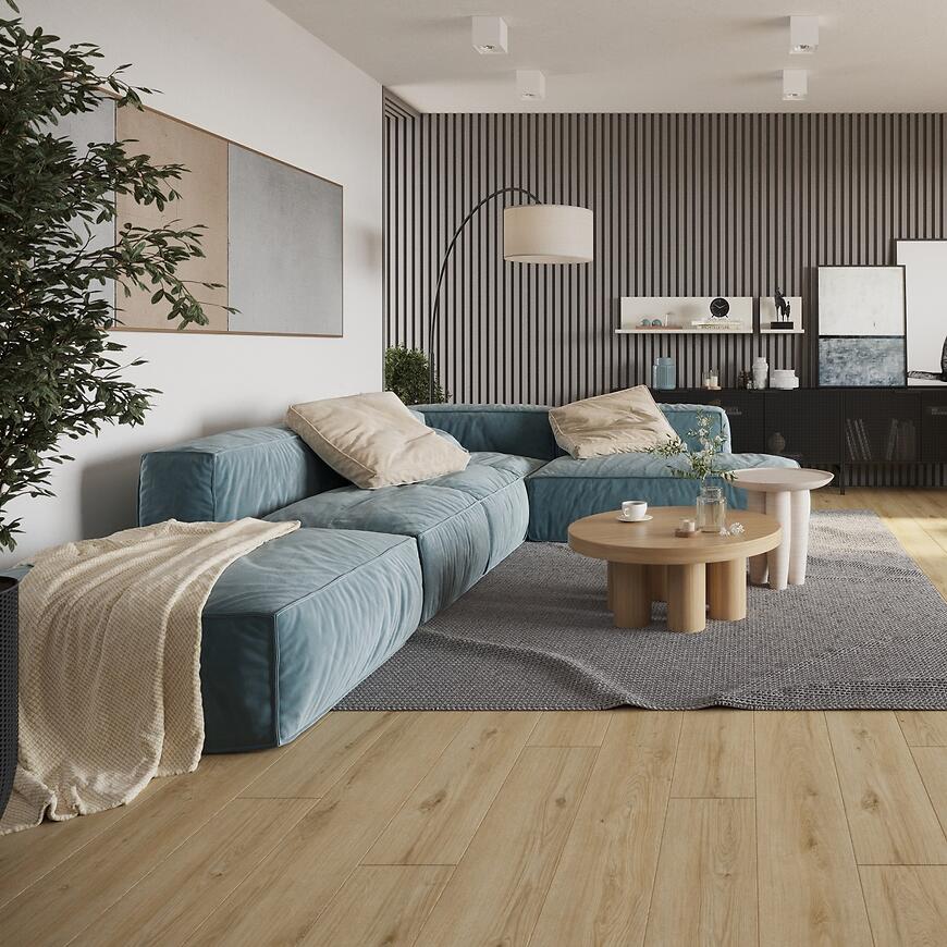 Panele podłogowe wodoodporne to idealne rozwiązanie dla osób poszukujących trwałej, estetycznej i praktycznej podłogi do intensywnie użytkowanych wnętrz. Dzięki klasie ścieralności AC5 świetnie sprawdzają się w miejscach narażonych na duże obciążenia, takich jak korytarze, kuchnie czy biura, zachowując elegancki wygląd przez długie lata. Czterostronna V-fuga nadaje podłodze naturalny charakter, a jednolamelowa konstrukcja podkreśla efekt deski o pełnej długości.