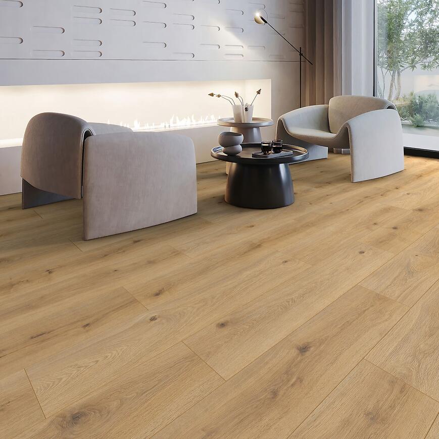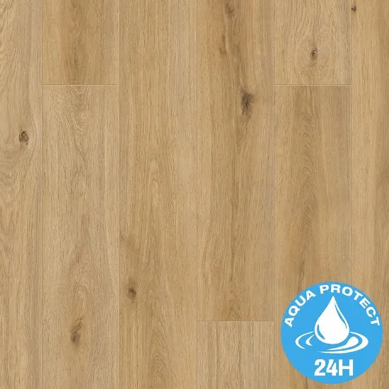 Naturalny dekor w odcieniu dębu oraz struktura drewna nadają podłodze wyjątkowego charakteru i ciepła, a jednolamelowa deska standard z czterostronną V-fugą idealnie podkreśla klasyczny, a zarazem nowoczesny styl wnętrza. Panele są wodoodporne, co zwiększa ich funkcjonalność i pozwala na bezpieczne stosowanie w pomieszczeniach narażonych na kontakt z wilgocią.