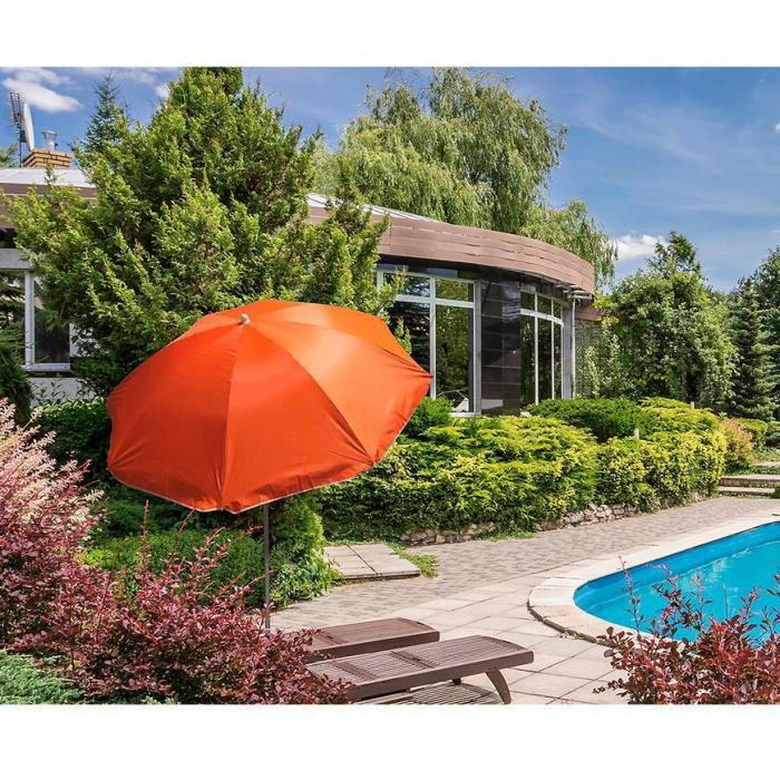 Parasol ogrodowy przyda się w ogrodzie jak i na wyprawie nad wodę. Niezastąpiony element w słoneczne dni na plaży, działce lub balkonie. Składany i pakowany w pokrowiec zajmuje niewiele miejsca. Tkanina parasola pokryta jest srebrna powłoką, która odbija promienie słoneczne i nie nagrzewa się. Stalowy stelaż i 8 żeber sprawiają, że parasol jest stabilny. Parasol rozkłada się ręcznie za pomocą suwaka.