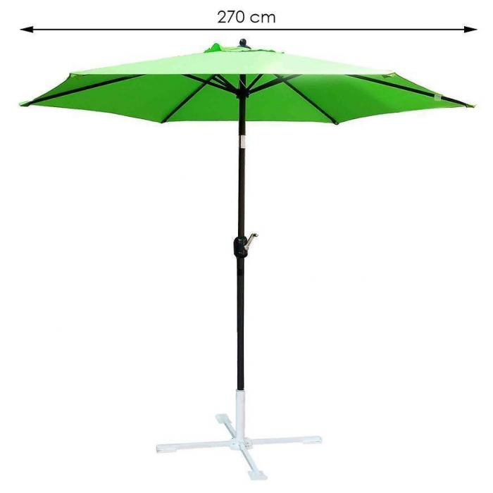 Parasol ogrodowy 270cm to idealna propozycja na słoneczne dni na tarasie czy w ogrodzie. Zaletą produktu jest półautomatyczne rozkładanie oraz wywietrznik. Parasol można ustawić według własnego uznania dzięki regulacji czaszy i korby. Po złożeniu zajmuje niewiele miejsca. Materiał poszycia można śmiało wyprać w pralce, ale nie w wyższej temperaturze niż 30 stopni C. Do parasola wystarczy dokupić dowolny stojak.