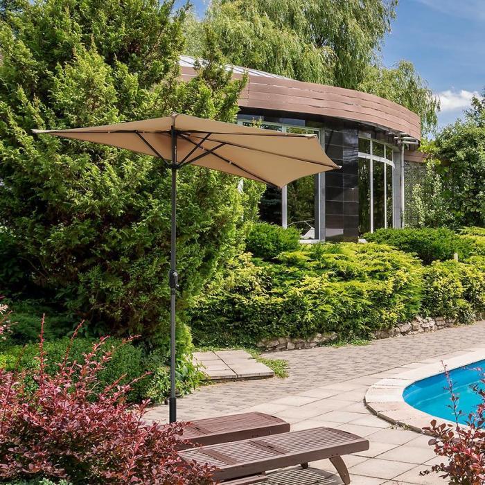 Parasol ogrodowy przyda się w ogrodzie jak i na wyprawie nad wodę. Niezastąpiony element w słoneczne dni na plaży, działce lub balkonie. Parasol półkolisty na korbkę w kolorze czekolady lub beżu. Stelaż i 5 żeber sprawiają, że parasol jest stabilny. Pokrycie parasola jest szybkoschnące. Poliester to materiał syntetyczny, z którego jest wykonany parasol – jest wytrzymały, słabo chłonie wilgoć. Jest odporny na pleśń i grzyby. Zaleca się dokupienie przystosowanej do kształtu parasolu podstawy.
