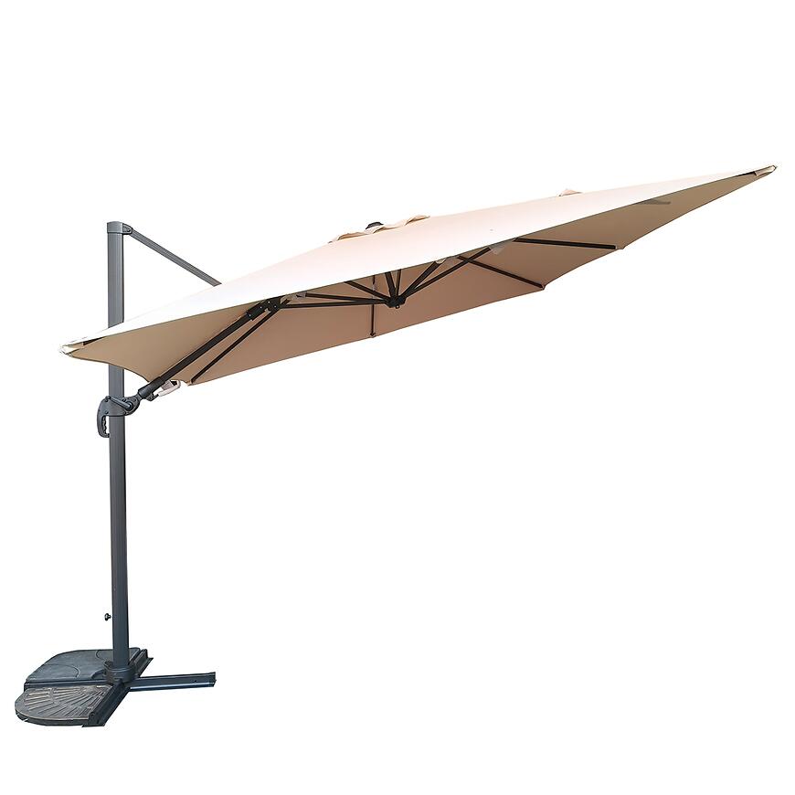Parasol ogrodowy Roma 300x300 cm w kolorze beżowym to eleganckie i funkcjonalne rozwiązanie do zacienienia tarasu, ogrodu lub dużego balkonu. Kwadratowa czasza zapewnia równomierne pokrycie przestrzeni, tworząc komfortową strefę relaksu na świeżym powietrzu.