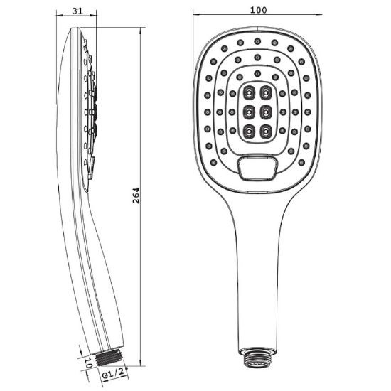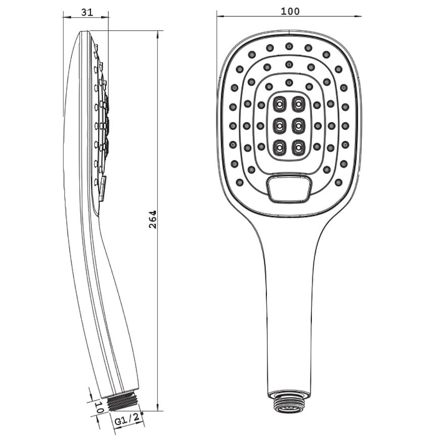 - rączka prysznicowa (DAVIS-RCRB), 3-funkcyjna, rodzaj strumienia: deszcz, masaż, mieszany