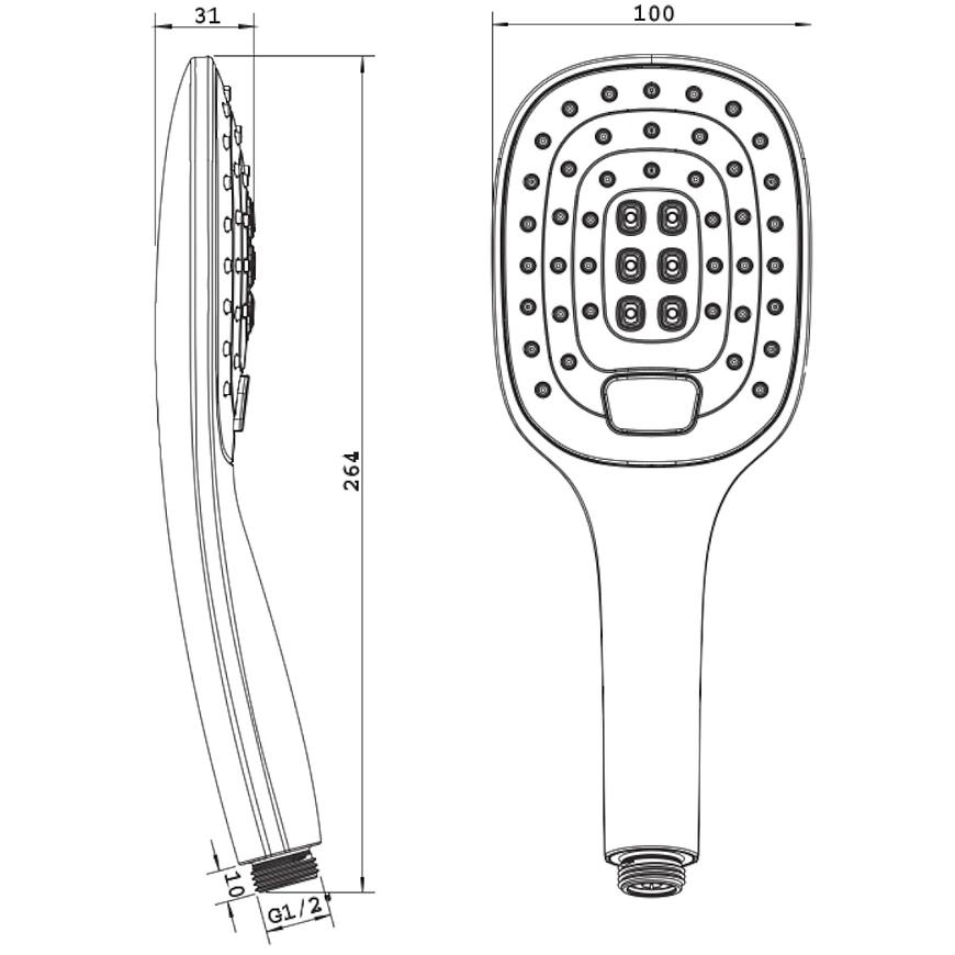 - rączka prysznicowa (JIMJIM-RBL), 3-funkcyjna, rodzaj strumienia: deszcz, bicz, mieszany