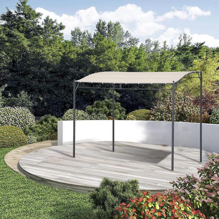 Pawilon ogrodowy w formie pergoli o wymiarach 2x3x2,6 m w praktycznym kolorze beżowym będzie idealnym rozwiązaniem na ochronę przed słońcem, a także miejscem na chwilę odpoczynku.