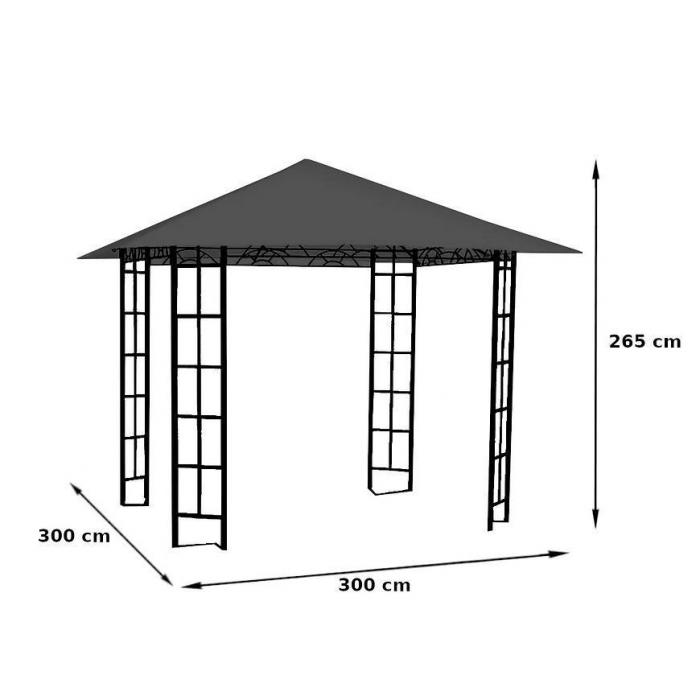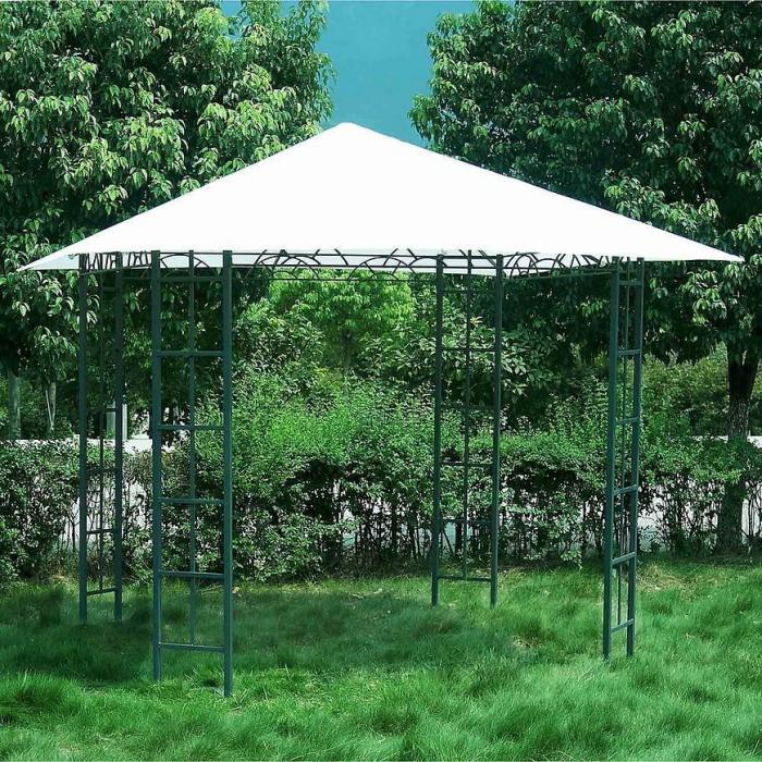 Pawilon o wymiarach 3x3x2,65 m i w praktycznym kolorze białym będzie idealnym rozwiązaniem na ochronę przed słońcem, a także miejscem na chwilę odpoczynku. Na metalowych nogach altany można wieszać doniczki z kwiatami lub sadzić pnące rośliny, należy jednak pamiętać, aby przed tym odpowiednio zaimpregnować ramę.