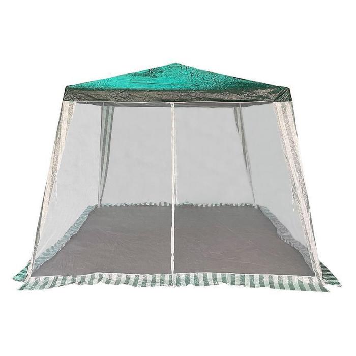 Pawilon o wymiarach 2,4x2,4x2,5 m i w praktycznym kolorze białym z moskitierą będzie idealnym rozwiązaniem na ochronę przed słońcem, a także miejscem na chwilę odpoczynku. Dach wyprodukowano w 100% z polietylenu.