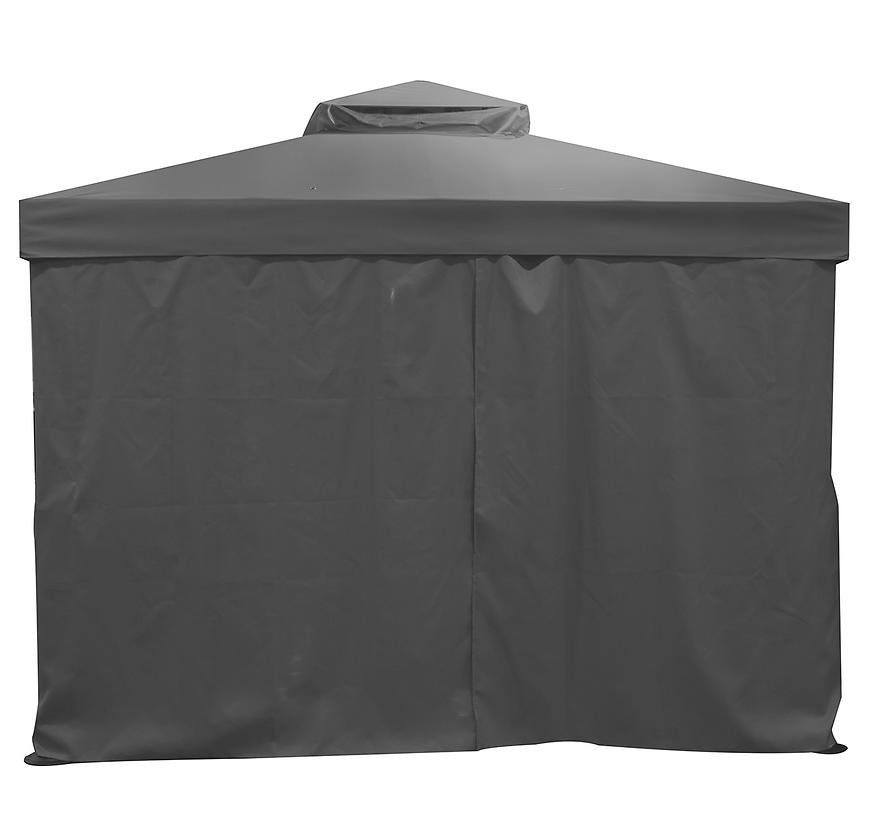 - Ścianki materiałowe o gramaturze 160 g/m² dodają prywatności i umożliwiają zamknięcie pawilonu, tworząc komfortową przestrzeń w każdej sytuacji.