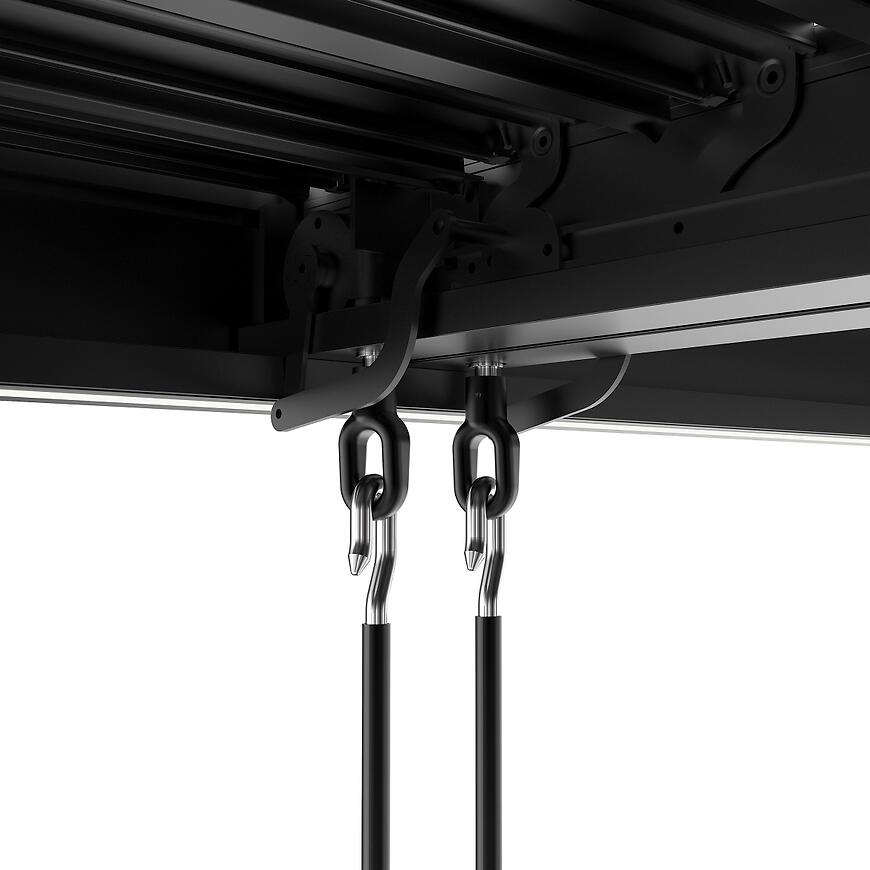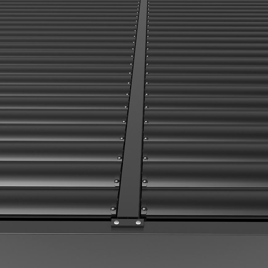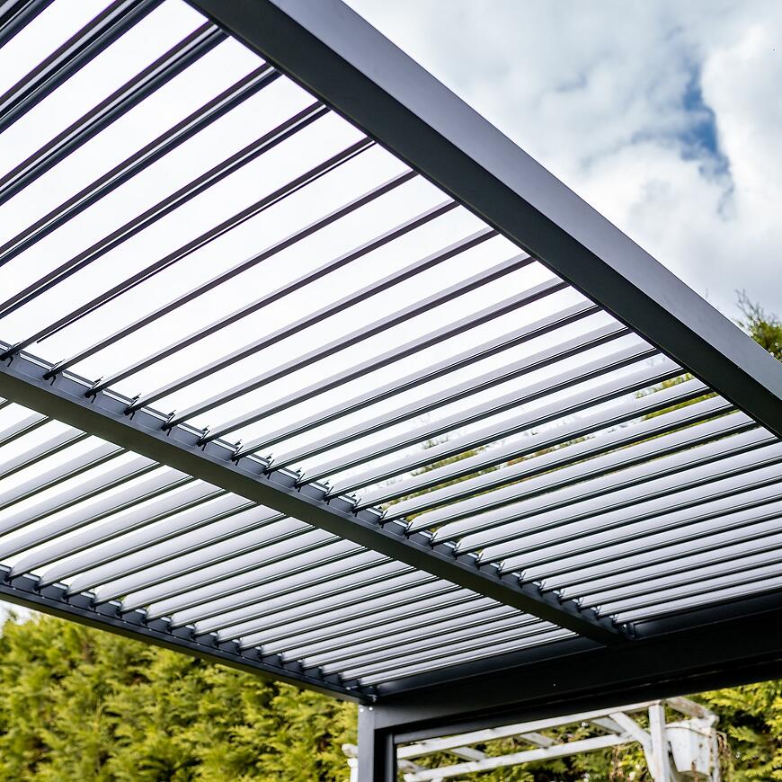 Pergola została wyposażona w 60 aluminiowych lameli dachowych o wymiarach 145 × 23 × 1,4 mm. System manualnego otwierania z przekładniami umieszczonymi centralnie lub po bokach pozwala w pełni kontrolować ilość światła i wentylację, dostosowując przestrzeń do aktualnych potrzeb. Konstrukcja dachu jest odporna na obciążenie do 40 kg/m², a przy zamkniętym dachu wytrzymuje podmuchy wiatru do 32,6 m/s (klasa 6).