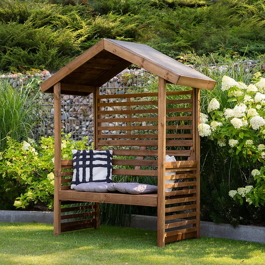 Pergola z ławką Aston to eleganckie i funkcjonalne rozwiązanie, które wprowadzi do każdego ogrodu wyjątkowy klimat relaksu i estetyki. Wykonana z wysokiej jakości drewna świerkowego, charakteryzuje się naturalnym wyglądem, trwałością oraz odpornością na warunki atmosferyczne. Jej solidna konstrukcja o wymiarach 168,5 × 66 × 199 cm zapewnia stabilność i komfort użytkowania, a zintegrowana ławka stanowi idealne miejsce do odpoczynku w cieniu pnących roślin.