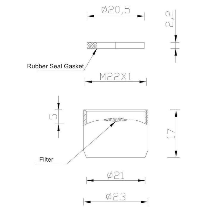 Perlator umywalkowy/zlewozmywakowy wykonany z mosiądzu, stali i tworzywa sztucznego o średnicy 22mm do wylewek typu M22.