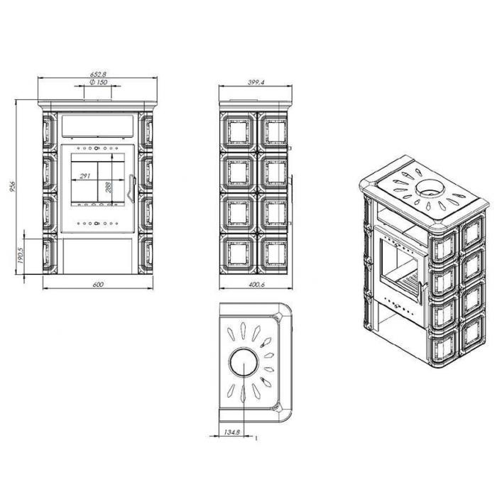 -komora paleniska wyłożona jest szamotem poprawiającym parametry pieca oraz zwiększającym oddawanie ciepła po wygaśnięciu paleniska