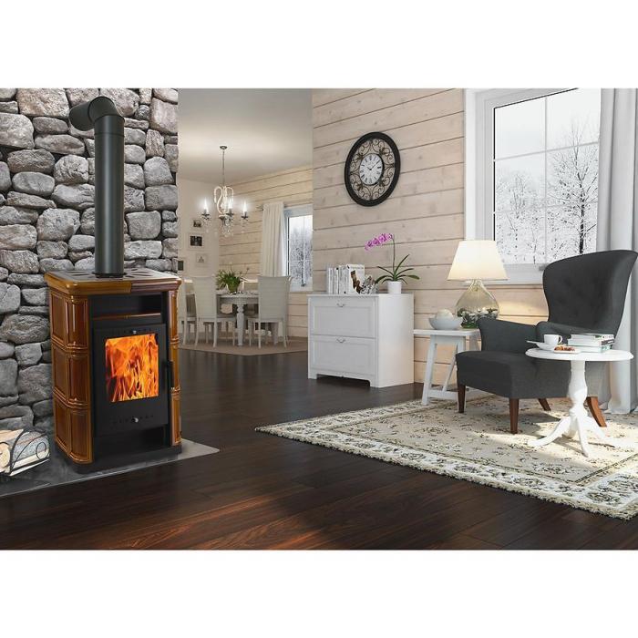 komora paleniska wyłożona jest szamotem poprawiającym parametry pieca oraz zwiększającym oddawanie ciepła po wygaśnięciu paleniska