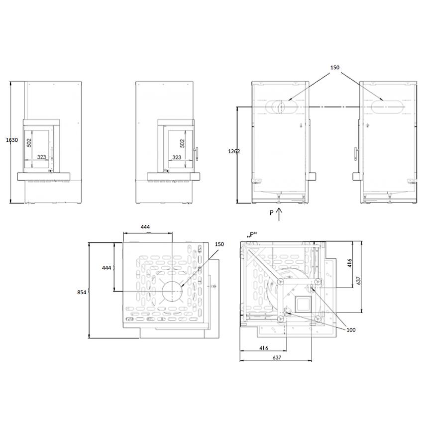 Piec kominkowy ABX Wells dostępny jest w kolorze białym lub czarnym, co pozwala dopasować go do różnych aranżacji wnętrz – od minimalistycznych po bardziej klasyczne. Duża szyba o wymiarach 32,3 × 50,2 cm zapewnia szeroki widok na ogień, tworząc przyjemną atmosferę w salonie. Wysokość 1630 mm, szerokość i głębokość po 854 mm oraz waga 247 kg świadczą o solidnej, stabilnej konstrukcji. Przyłącze spalin górne lub tylne oraz średnica wylotu spalin 150 mm ułatwiają dopasowanie pieca do istniejącej instalacji kominowej.