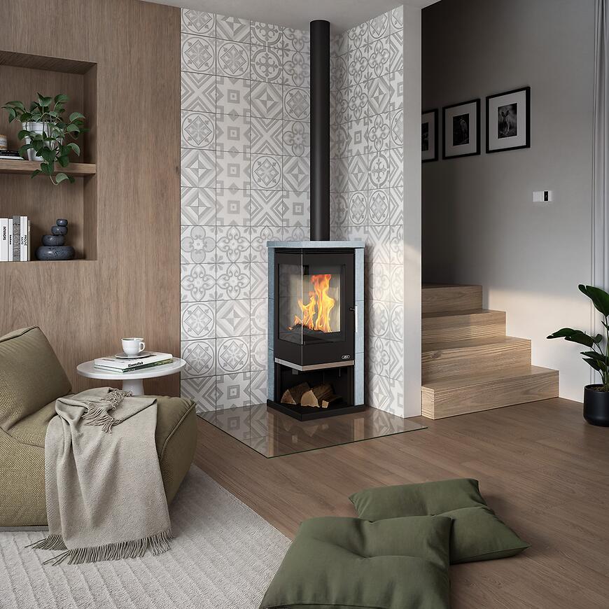 Piec kominkowy Admiral Mastek czarny HD to solidny piec wolnostojący zaprojektowany z myślą o efektywnym i stabilnym ogrzewaniu domów jednorodzinnych oraz przestrzeni mieszkalnych do około 70 m². Nominalna moc grzewcza 7 kW pozwala na skuteczne ogrzanie kubatury od 70 do 180 m³, co sprawia, że piec kominkowy na drewno Admiral Mastek doskonale sprawdzi się zarówno w salonie, jak i w otwartych strefach dziennych. Konstrukcja ze stali i kamienia zapewnia wysoką trwałość oraz bardzo dobrą akumulację ciepła, a klasyczna kolorystyka czarno-szara łatwo dopasowuje się do nowoczesnych i tradycyjnych aranżacji wnętrz.