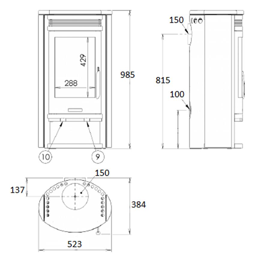 Przyłącze spalin górne lub tylne oraz średnica wylotu 150 mm dają dużą swobodę w planowaniu instalacji. Dolot powietrza o średnicy fi 100 mm umożliwia podłączenie zewnętrznego źródła powietrza, co jest szczególnie istotne w nowoczesnych, szczelnych budynkach. Kompaktowe wymiary pieca – wysokość 985 mm, szerokość 523 mm i głębokość 384 mm – sprawiają, że Arktis 4 piaskowiec łatwo dopasować do różnych aranżacji. Przybliżona powierzchnia ogrzewania do 50 m² czyni go idealnym wyborem do salonów, domków letniskowych oraz mieszkań.