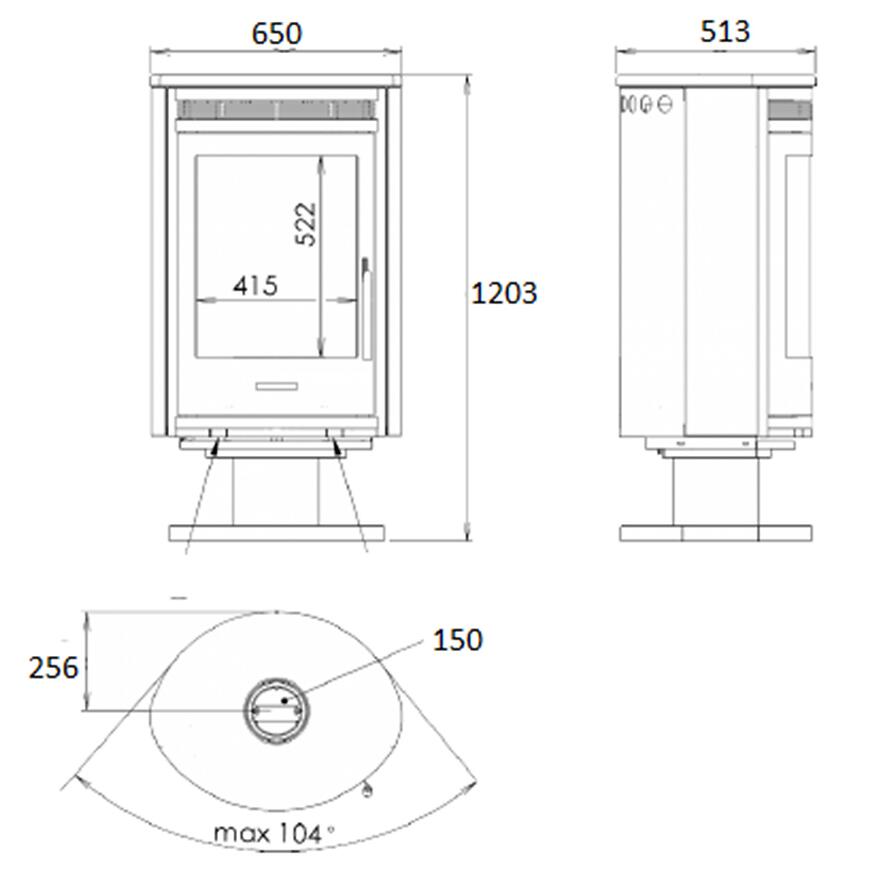 Piec kominkowy z miejscem na drewno pod paleniskiem zapewnia praktyczne przechowywanie opału i utrzymanie porządku wokół urządzenia. Otwieranie drzwi w lewo oraz wyjmowany popielnik ułatwiają czyszczenie i konserwację. Regulacja szybkości spalania pozwala precyzyjnie kontrolować ilość doprowadzanego powietrza, co przekłada się na lepszą kontrolę temperatury i zużycia paliwa. Górne przyłącze spalin o średnicy 150 mm umożliwia łatwe podłączenie do standardowych systemów kominowych.