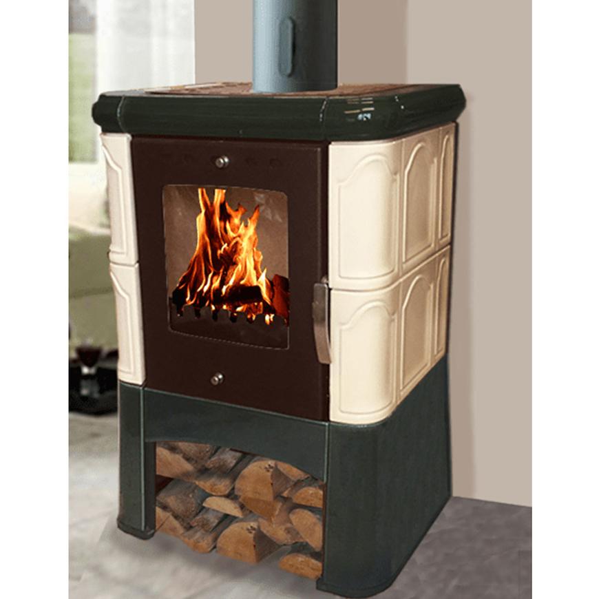 Piec wykonany jest z wytrzymałej stali, co zapewnia trwałość i solidność. Kaflowe ceramiczne elementy nadają mu unikalny wygląd i charakter. Palenisko z szamotu gwarantuje efektywne spalanie drewna, a ruszt z żeliwa stabilność i wydajność.