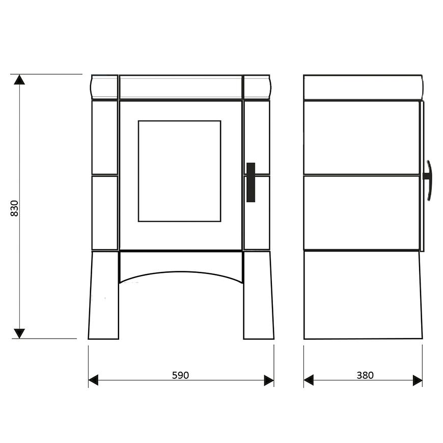 Piec wykonany jest z wytrzymałej stali, co zapewnia trwałość i solidność. Kaflowe ceramiczne elementy nadają mu unikalny wygląd i charakter. Palenisko z szamotu gwarantuje efektywne spalanie drewna, a ruszt z żeliwa stabilność i wydajność.