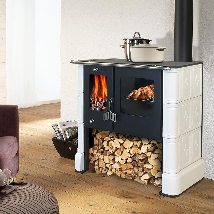 Piec stalowo kaflowy Steyr Sparherd Sand umożliwia pieczenie i gotowanie potraw. Posiada ceramiczną pokrywę. Do palenia w piecu można używać drewna lub brykietu drzewnego. Pod paleniskiem znajduje się łatwo dostępne miejsce do przechowywania drewna. Drzwiczki otwierane na lewą stronę, piec posiada wyjmowany popielnik. Piec wykonany ze stali, boki obłożone kaflami w kolorze kremowym. Produkt spełnia normy Ecodesign 2022 - jest zgodny z ekoprojektem oraz posiada certyfikat CE.