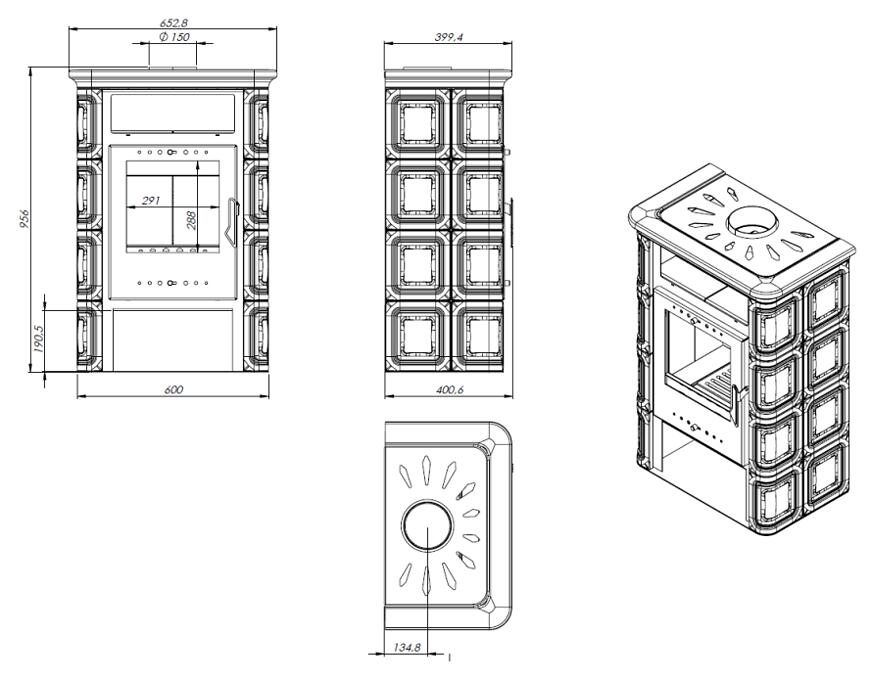Piec stalowo-kaflowy VERA w kolorze zielonym to eleganckie i funkcjonalne rozwiązanie, które doskonale sprawdzi się w nowoczesnych i klasycznych wnętrzach. Dzięki mocy nominalnej 6 kW oraz wysokiej sprawności grzewczej na poziomie 71,6%, urządzenie zapewnia skuteczne i ekonomiczne ogrzewanie pomieszczeń o powierzchni do 60 m², co odpowiada kubaturze około 150 m³. Piec został przystosowany do spalania drewna o długości polan do 32 cm, a zastosowany dolot powietrza oraz deflektor spalin wpływają na optymalny proces spalania i ograniczenie strat energii.