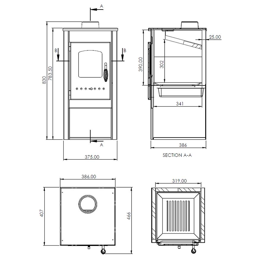 Dzięki górnemu przyłączu spalin o średnicy 120 mm, deflektorowi spalin oraz kompaktowym wymiarom paleniska (35,7x35,7x39 cm), piec Nera Lite idealnie sprawdzi się w mniejszych pomieszczeniach, gdzie liczy się zarówno funkcjonalność, jak i estetyka.