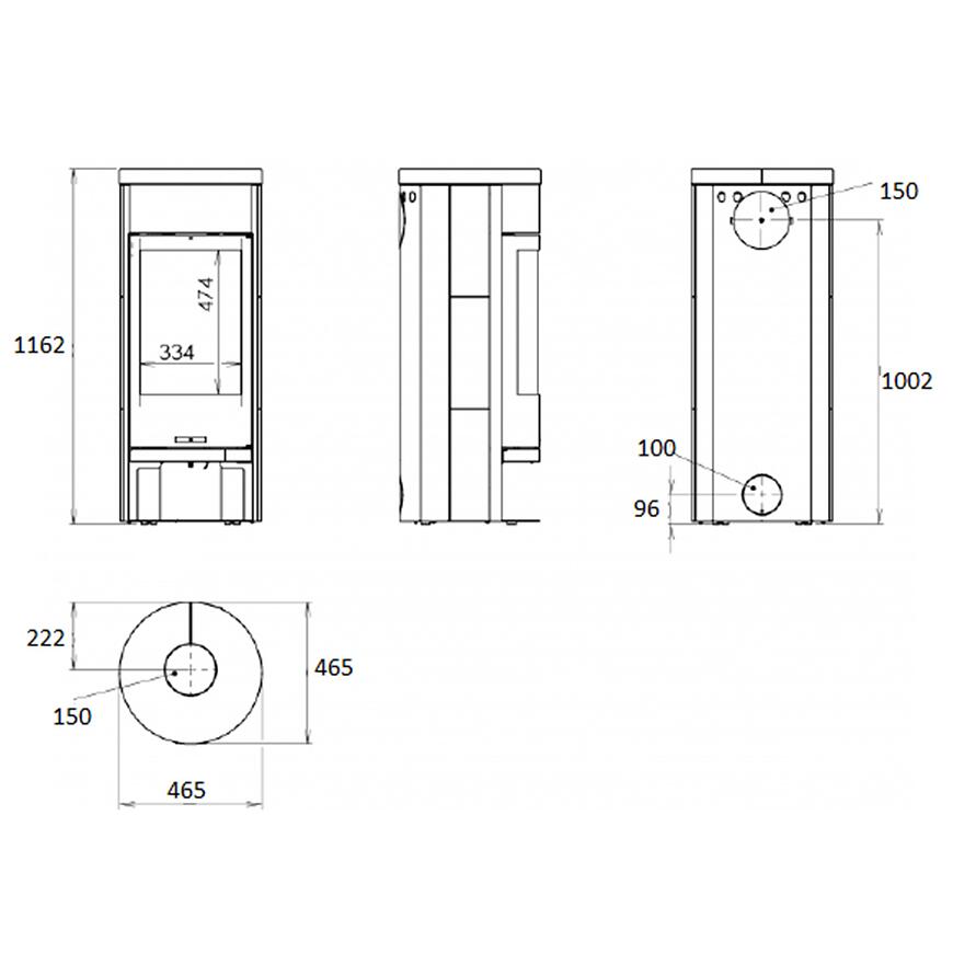 Wysokość pieca wynosi 1162 mm, a jego szerokość i głębokość to 465 mm, co sprawia, że model Vigo 6 kW łatwo wkomponować w różne aranżacje wnętrz. Drzwi otwierane w lewo umożliwiają wygodny dostęp do paleniska o wymiarach 32x46x29 cm, a duża szyba (33,4x47,4 cm) pozwala cieszyć się pełnym widokiem ognia, tworząc przytulną atmosferę w domu.