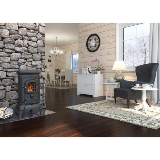 Rustykalny design Plata sprawia, że piec doskonale wpisuje się zarówno w tradycyjne, jak i eklektyczne wnętrza. Jego wyraziste linie i solidne wykonanie z żeliwa nadają mu charakteru, tworząc nie tylko źródło ciepła, ale również stylowy element aranżacyjny.