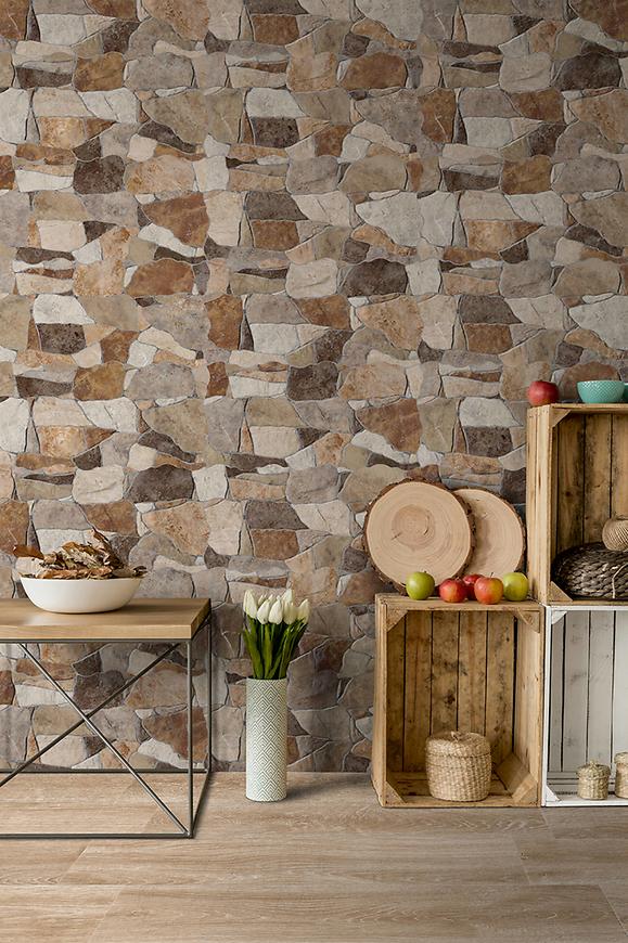 Wąski, podłużny format płytki pozwala na tworzenie realistycznych aranżacji kamiennych na podłogach i ścianach, tworząc efekt unikalnej mozaiki w różnych odcieniach.