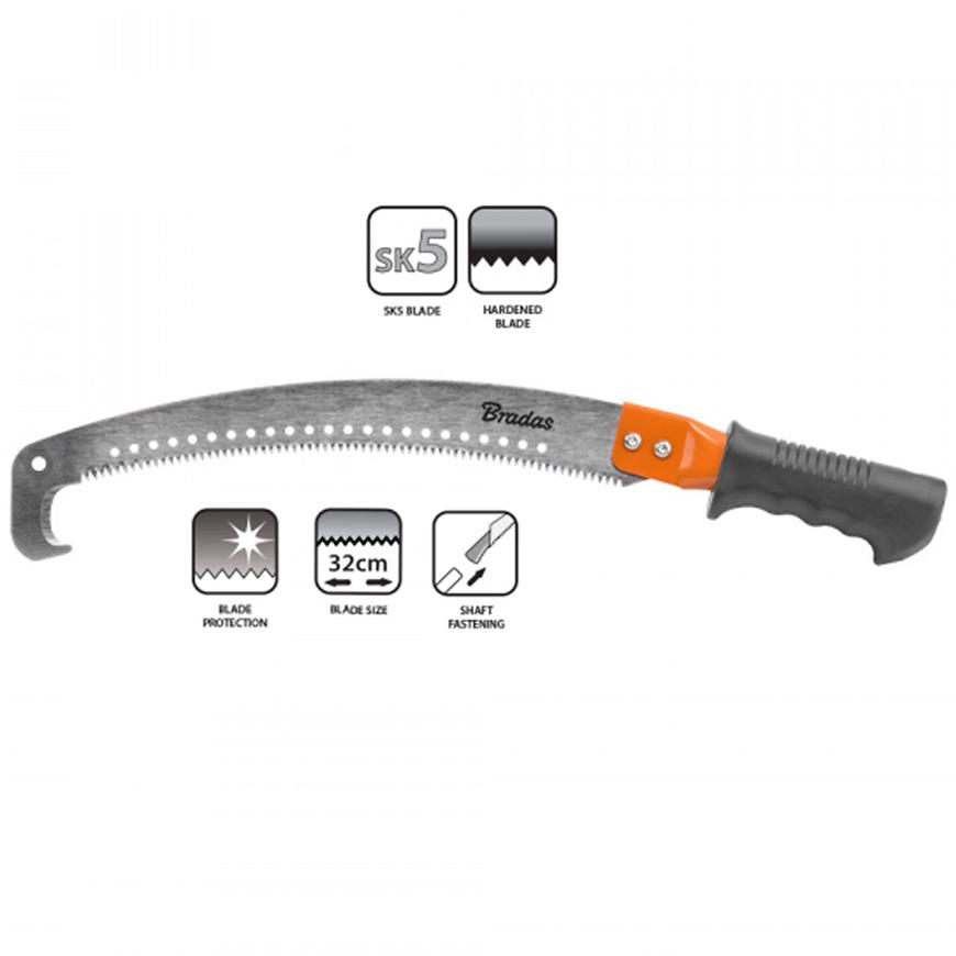 Piła z hakiem V-SERIES to narzędzie wyposażone w wysokiej jakości, hartowane ostrze ze stali SK5 o długości 320 mm, które dzięki wyprofilowanym zębom w dwóch płaszczyznach zapewnia precyzyjne i efektywne cięcie zarówno grubych, jak i cienkich gałęzi. Wygięte ostrze zakończone hakiem minimalizuje ryzyko zsuwania się narzędzia podczas pracy, co znacznie zwiększa komfort i bezpieczeństwo użytkowania. Metalowa rączka pokryta gumą gwarantuje pewny chwyt, a praktyczny otwór pozwala na zamocowanie trzonka, ułatwiając prace na wysokościach. To idealna piła dla ogrodników i profesjonalistów poszukujących niezawodnego sprzętu do cięcia gałęzi.
