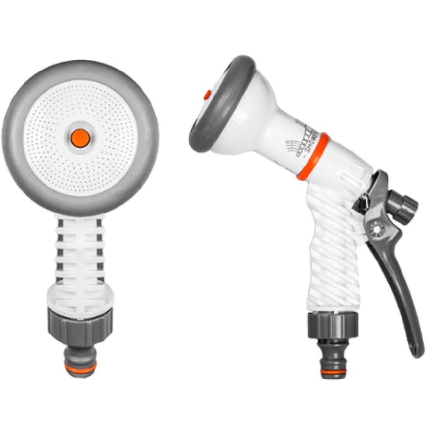 WHITE LINE pistolet do zraszania wielofunkcyjny STANDARD to niezawodne narzędzie ogrodowe, które wyróżnia się opatentowanym mechanizmem zamykania i otwierania wypływu wody oraz precyzyjną regulacją dopływu. Wykonany z wysokiej jakości tworzywa ABS, pistolet gwarantuje trwałość i odporność na uszkodzenia, a testy ciśnieniowe zapewniają bezpieczeństwo użytkowania. Produkt dostępny jest w nowoczesnym, szaro-białym kolorze i objęty dwuletnią gwarancją, co czyni go idealnym wyborem do efektywnego nawadniania ogrodu.