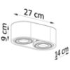Plafon Ellen 2 wyposażony jest w dwa punkty świetlne, co pozwala na równomierne oświetlenie pomieszczenia. Dzięki niewielkim wymiarom – szerokość 14 cm, wysokość 10 cm oraz długość 27 cm – plafon Ellen 2 doskonale sprawdzi się w mniejszych pomieszczeniach, takich jak korytarze, łazienki czy sypialnie, gdzie potrzebne jest funkcjonalne, ale dyskretne oświetlenie. Jego kompaktowa forma nie dominuje przestrzeni, a jednocześnie spełnia swoją funkcję, rozświetlając wnętrze przyjemnym, rozproszonym światłem.