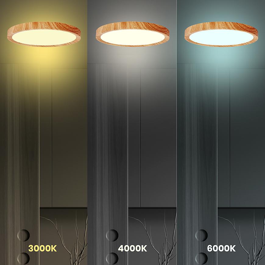 Plafon MAQ ML1774 18W CCT WOOD PL to stylowa lampa sufitowa LED o mocy 18W, łącząca nowoczesną funkcjonalność z eleganckim wykończeniem w kolorze drewna. Posiada możliwość regulacji barwy światła (CCT), co pozwala dopasować oświetlenie do nastroju i funkcji pomieszczenia. Idealna do salonu, sypialni, kuchni czy biura.