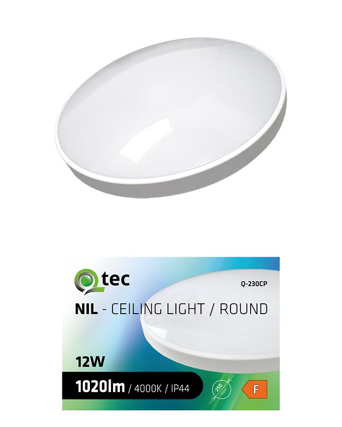 Plafon QTEC o mocy 12W to funkcjonalne źródło neutralnego białego światła (4000K) o strumieniu świetlnym 1020 lm. Wykonany z trwałego plastiku w białym kolorze, wyposażony w zintegrowane źródło LED. Dzięki klasie szczelności IP44 sprawdzi się zarówno w pomieszczeniach mieszkalnych, jak i w miejscach o podwyższonej wilgotności, np. w łazience. Średnica plafonu wynosi 25 cm. Produkt energooszczędny, nieprzyciemnialny.