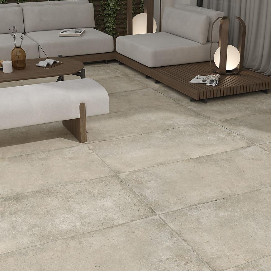 Produkt wykonany w stylu imitacji kamienia nadaje przestrzeni naturalny i nowoczesny charakter, idealnie komponując się z tarasami, balkonami, ogrodami zimowymi czy strefami relaksu przy domu. Matowa powierzchnia podkreśla subtelną strukturę płyty, a jednocześnie jest praktyczna w codziennym użytkowaniu.