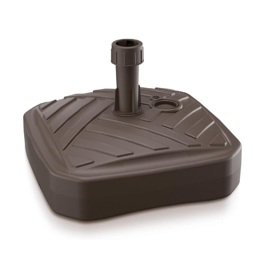 Kwadratowa podstawa do parasola w eleganckim kolorze umbra (ciemny brąz) zapewnia stabilność każdego parasola ogrodowego. Wykonana z wysokiej jakości plastiku HDPE, odpornego na promieniowanie UV, sprawdza się zarówno na tarasie, balkonie, jak i w ogrodzie.