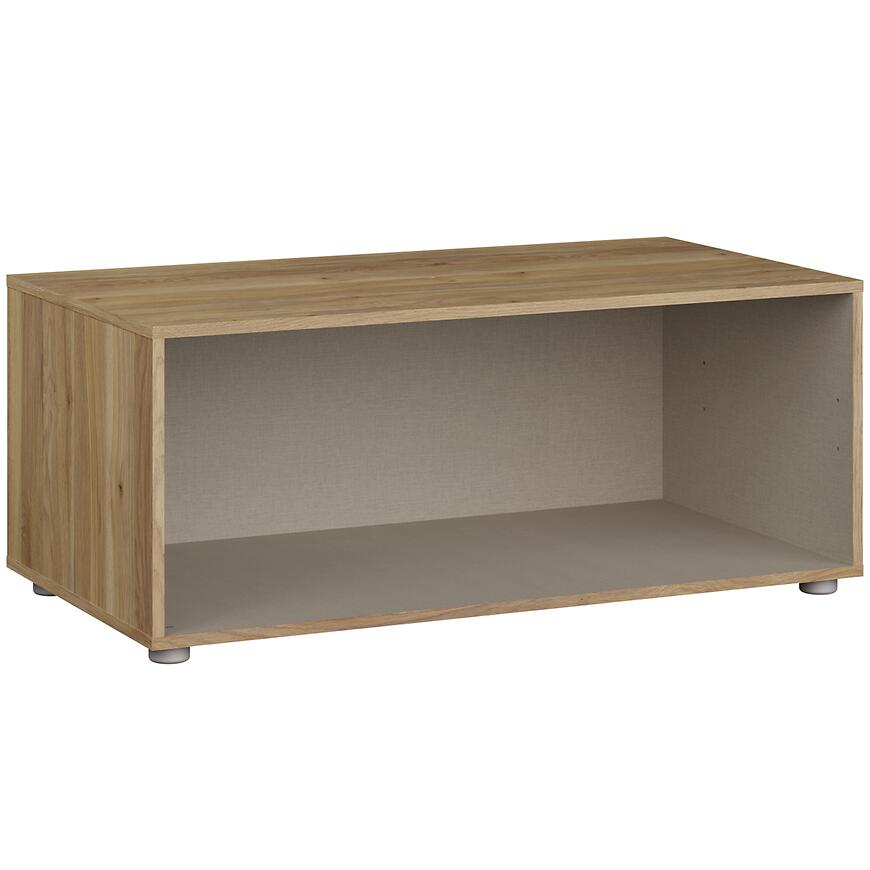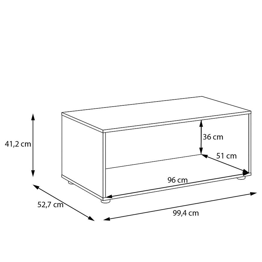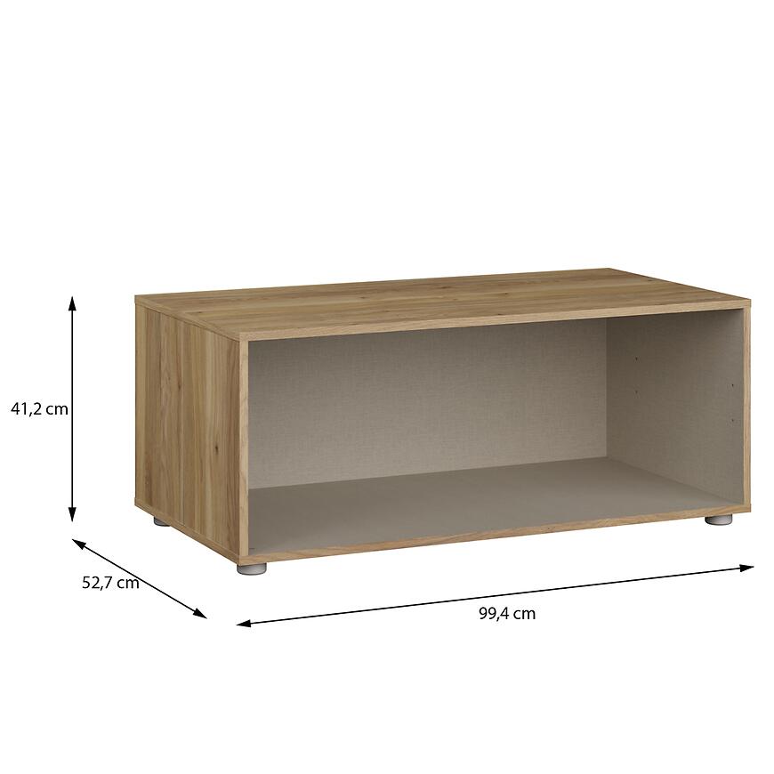 Podstawka ma 99,4 cm szerokości, 41,2 cm wysokości i 52,7 cm głębokości, co gwarantuje stabilność nawet przy większych szafach. Wykonana z płyty wiórowej laminowanej, łączy trwałość z lekką konstrukcją, a waga 13,3 kg ułatwia montaż i transport.