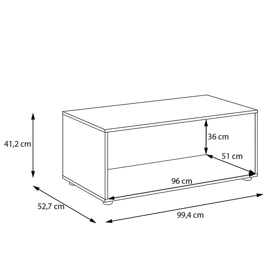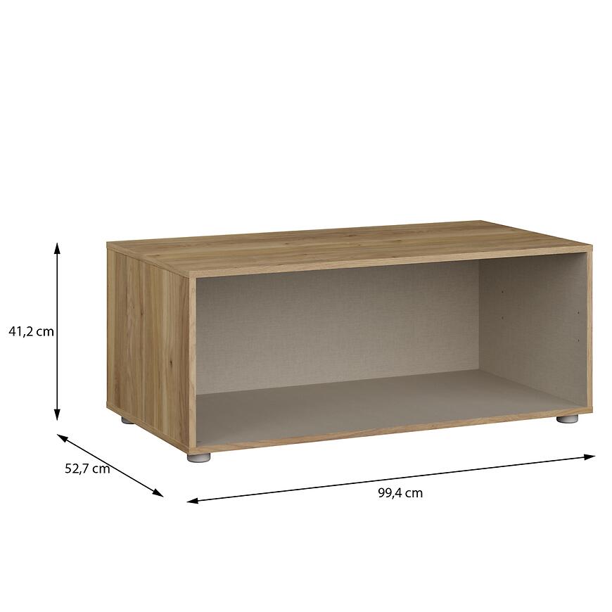 Podstawka ma 99,4 cm szerokości, 41,2 cm wysokości i 52,7 cm głębokości, zapewniając stabilne podparcie nawet dla większych szaf. Wykonana z płyty wiórowej laminowanej, łączy trwałość z lekką konstrukcją, a waga 13,3 kg ułatwia montaż i transport.