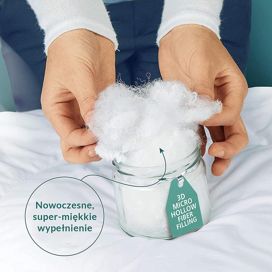 Przyjemny sen i odpoczynek podczas snu to nie tylko zasługa prawidłowo dobranego materaca, ale także pościeli. Poduszka Antibacterial dzięki odpowiednio dobranych najwyższej jakości tkanin z substancją antybakteryjną, bezpiecznych dla każdego, zapewni komfortowy relaks nawet najbardziej wymagającym. Jest przyjazna alergikom, minimalizująca rozwój roztoczy. Ekologiczne i zdrowotne certyfikaty - OEKO-TEX Standard 100.