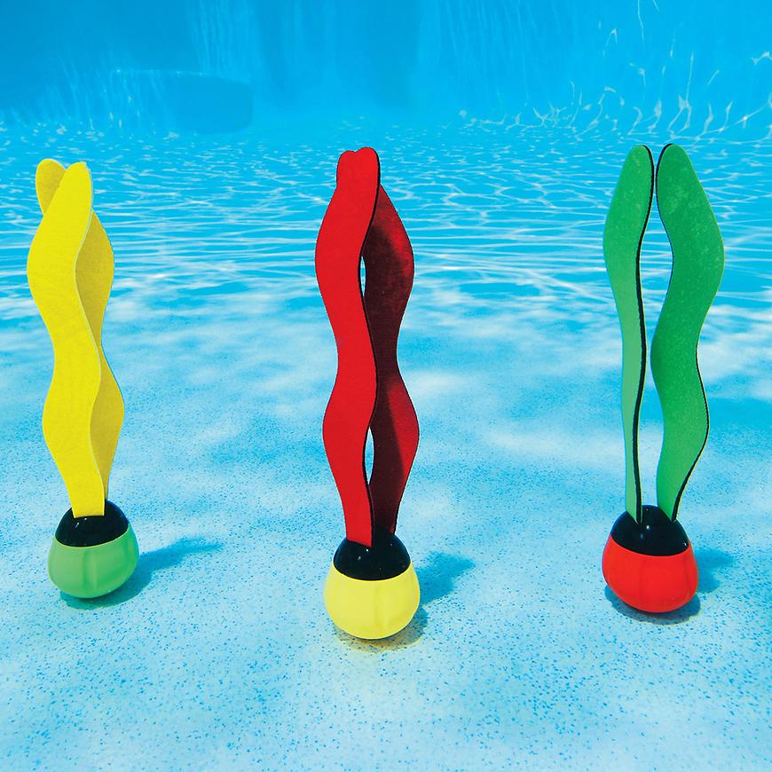 Kulki wykonane są z połączenia miękkiego plastiku i neoprenu, co sprawia, że są zarówno trwałe, jak i bezpieczne w użyciu. Wodorosty unoszą się pionowo w wodzie, co ułatwia dzieciom ich odnajdywanie i zachęca do dalszej zabawy oraz treningu nurkowego. To doskonały sposób na rozwijanie umiejętności nurkowania i zabawę w wodzie. W zestawie znajdują się trzy kolorowe zabawki.