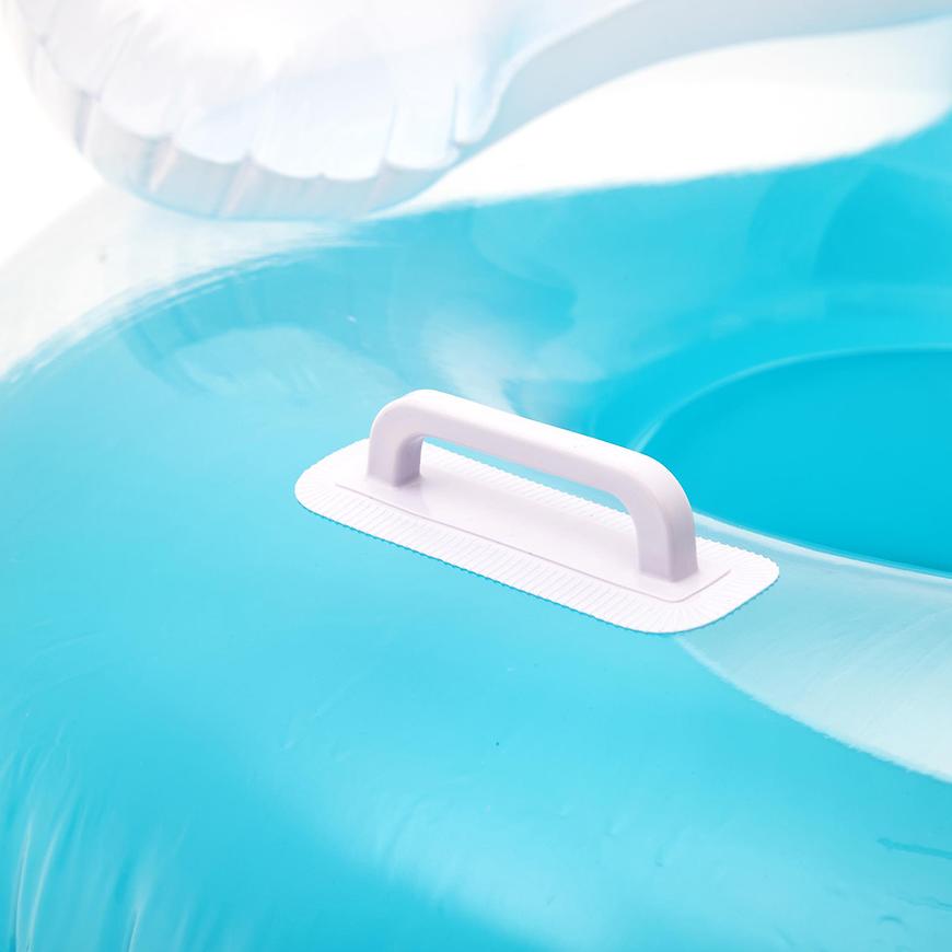 Podwójne koło zostało wyposażone w 2 wygodne zagłówki znajdujące się po przeciwnych stronach każdego otworu. Dzięki temu można cieszyć się relaksem twarzą w twarz ze swoim pływającym partnerem, co sprawia, że każda chwila spędzona na wodzie staje się jeszcze bardziej wyjątkowa. Wygodne uchwyty umożliwiają stabilne trzymanie się koła, zapewniając jednocześnie pełną swobodę ruchów.