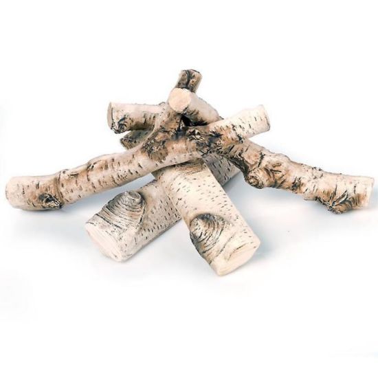 Zestaw zawiera cztery polany imitujące drewno brzozowe o różnej wielkości i kształcie jako dodatek do biokominków wiszących oraz wolnostojących. Polana ceramiczne nie zużywają się podczas użytkowania, a po wygaśnięciu płomienia przez długi czas oddają ciepło.