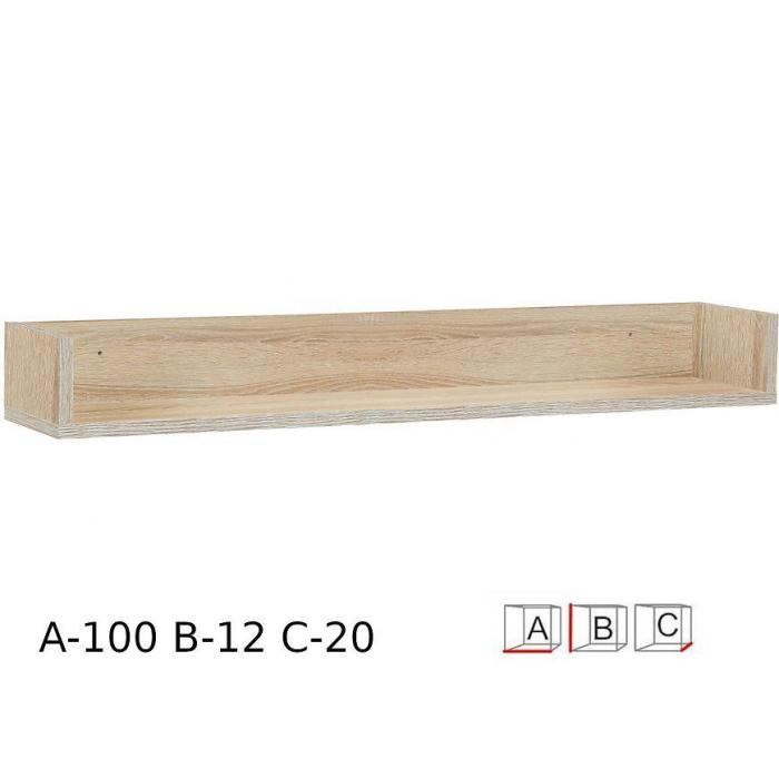 Półka wisząca została wykonana z płyty wiórowej laminowanej w kolorze dąb sonoma.