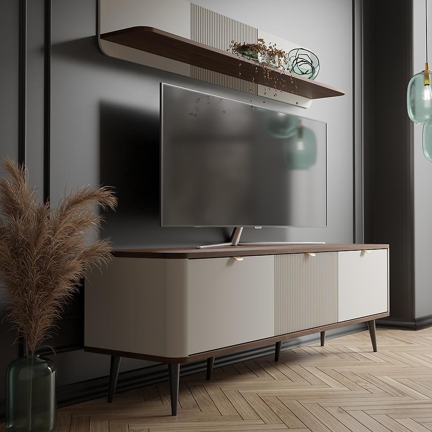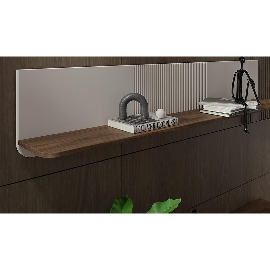 Dzięki modnemu połączeniu kolorów kashmir i orzech, półka świetnie komponuje się z jasnymi i ciemnymi aranżacjami wnętrz. Matowe wykończenie podkreśla nowoczesny charakter mebla, nadając mu subtelnej elegancji.