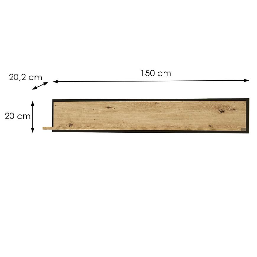 Półka Karia wyróżnia się niezwykłym designem opartym na dekorze w odcieniu dąb artisan z elementami w kolorze czarnym. To połączenie kolorów nadaje meblowi eleganckiego charakteru i sprawia, że doskonale komponuje się z nowoczesnym wystrojem wnętrza. Matowe wykończenie nie tylko dodaje elegancji, ale także zapewnia trwałość i odporność na uszkodzenia.