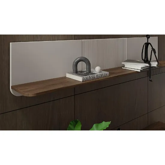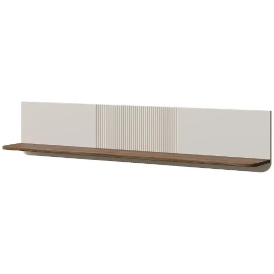 Dzięki modnemu połączeniu kolorów kashmir i orzech, półka świetnie komponuje się z jasnymi i ciemnymi aranżacjami wnętrz. Matowe wykończenie podkreśla nowoczesny charakter mebla, nadając mu subtelnej elegancji.